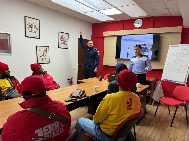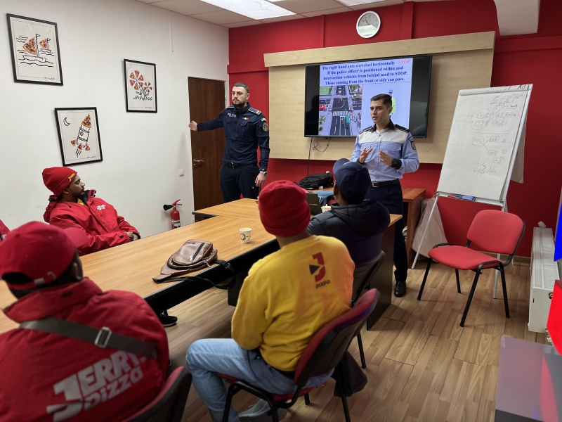 În zilele de 21 și 22 februarie 2024, polițiștii Biroului Educație Rutieră din cadrul Brigăzii Rutiere au fost prezenți la sediul unei societăți comerciale unde au susținut activități preventive cu cetățenii străini care desfășoară servicii de livrare la domiciliu folosind ca mijloc de deplasare autoturismul sau mopedul.