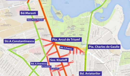 -restricționarea traficului pe bd. Mareșal Alexandru Averescu, între bd. Mărăști și Piața Arcul de Triumf, precum și pe străzile adiacente;