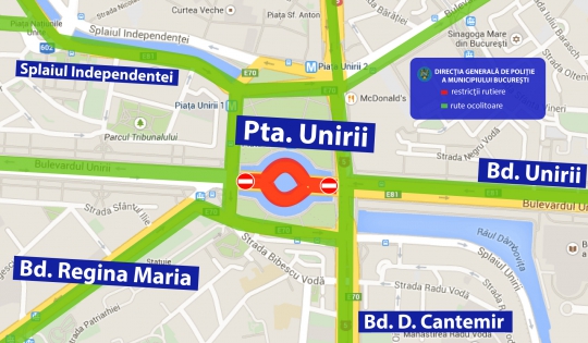 Pentru buna desfășurare a evenimentului, în perioada menționată mai sus, se va restricționa traficul rutier, gradual, în funcție de numărul de persoane, pe Bd. Unirii, segmentul cuprins între Bd. Dimitrie Cantemir și Splaiul Independenței (zona fântâni).