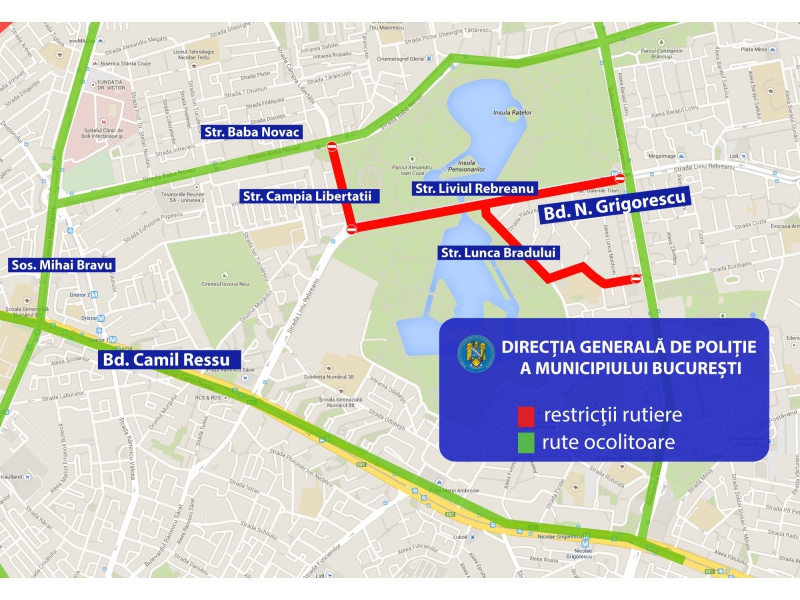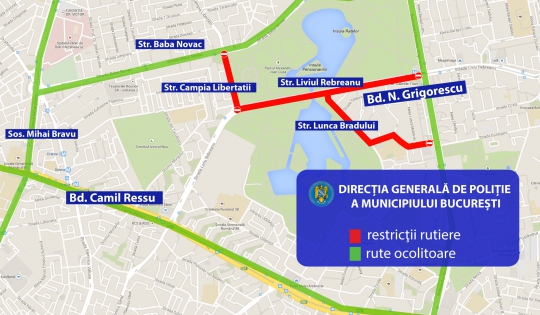 Pentru buna desfășurare a evenimentului, se va restricționa traficul rutier în perioada 31 decembrie 2022, începând cu ora 19.00 – 01 ianuarie 2023, până la ora 00.30, pe b-dul Liviu Rebreanu segmentul de drum cuprins între strada Câmpia Libertății și b-dul Nicolae Grigorescu, strada Câmpia Libertății, segmentul de drum cuprins între strada Baba Novac și b-dul Liviu Rebreanu, strada Lunca Bradului, segmentul de drum cuprins între b-dul Liviu Rebreanu și b-dul Nicoale Grigorescu.
