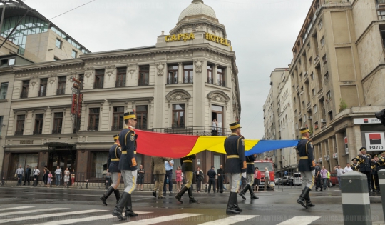 - pe durata intonării Imnului Național al României, circulaţia rutieră va fi oprită şi pe Bd. Regina Elisabeta, între Piaţa Universităţii şi Str. Ion Brezoianu, timp de 5 minute, în intervalul orar 10.00-11.00.